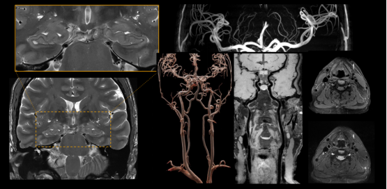 可进行头部、腹部、膝关节、胰腺等部位的超高分辨扫描,应用于烟雾病、帕金森病、脑肠轴、心源性卒中、肌萎缩侧索硬化(渐冻症)等的临床研究,呈现更丰富的细微结构,更精准的定量分析,助力全身疾病超早期发现。