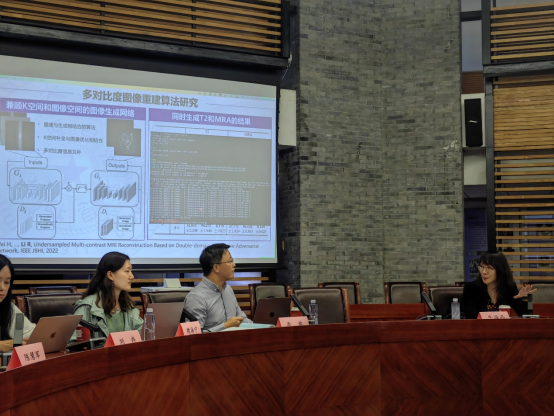 围绕李睿老师的介绍,专家组和项目组人员进行了现场交流。牛延涛、牛海晶等专家就关注的无线耦合线圈的稳定性可靠性验证、病患的吞咽活动对柔性线圈的图像质量影响、基于神经网络的多对比度图像重建算法创新、临床报告展现形式和判读准确度提升、柔性线圈的抗噪性等内容和项目组人员进行了深入的探讨,项目组就专家关注问题进行了更多细节内容的补充介绍。
