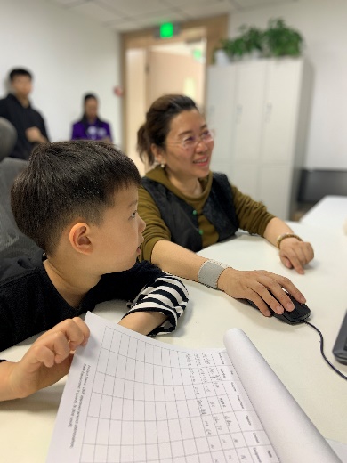 活动的第一部分,是由大学生志愿者讲解磁共振工作原理。志愿者向小朋友们讲述了磁共振的物理基础、成像原理、发展历程、磁共振设备的组成、工作原理等内容,志愿者不仅展示了专业的PPT,还通过道具,生动形象地向小朋友们演示了原子核的自旋、进动等科学现象,帮助大家理解量子力学;通过音乐的乐声和乐谱的对比,用生活中的示例帮助小朋友们理解傅里叶变换等科学原理。现场的小朋友也踊跃提出各种问题。在互动环节,同学们准确回答出了关于磁场强度的问题;来自民大附中的高一同学正确阐述了对磁共振成像的理解,赢得了现场一阵掌声。