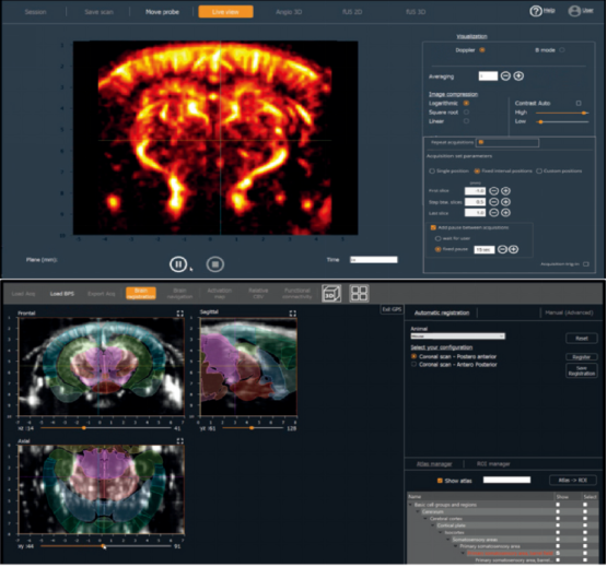 Iconeus One支持手动或程控扫描实时成像;可进行断层扫描和3D/4D成像;内置国际认可的Allen Brain 3D小鼠脑图谱,可快速自动配准全脑脑区及导航定位;自动分析各脑区的功能连接,获得全脑血流量变化的静态图像和视频。