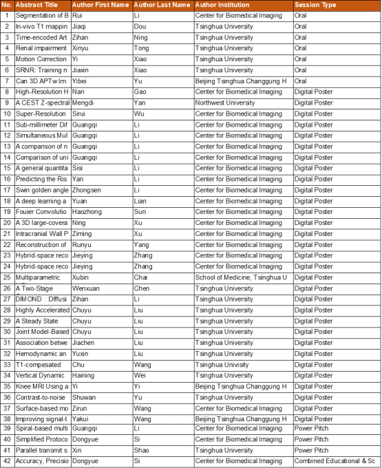 本次会议CBIR共有42篇摘要被大会接收,其中包括Digital Poster 31篇, Oral 7篇, Power Pitch 3篇, Combined Educational & Scientific session 1篇。